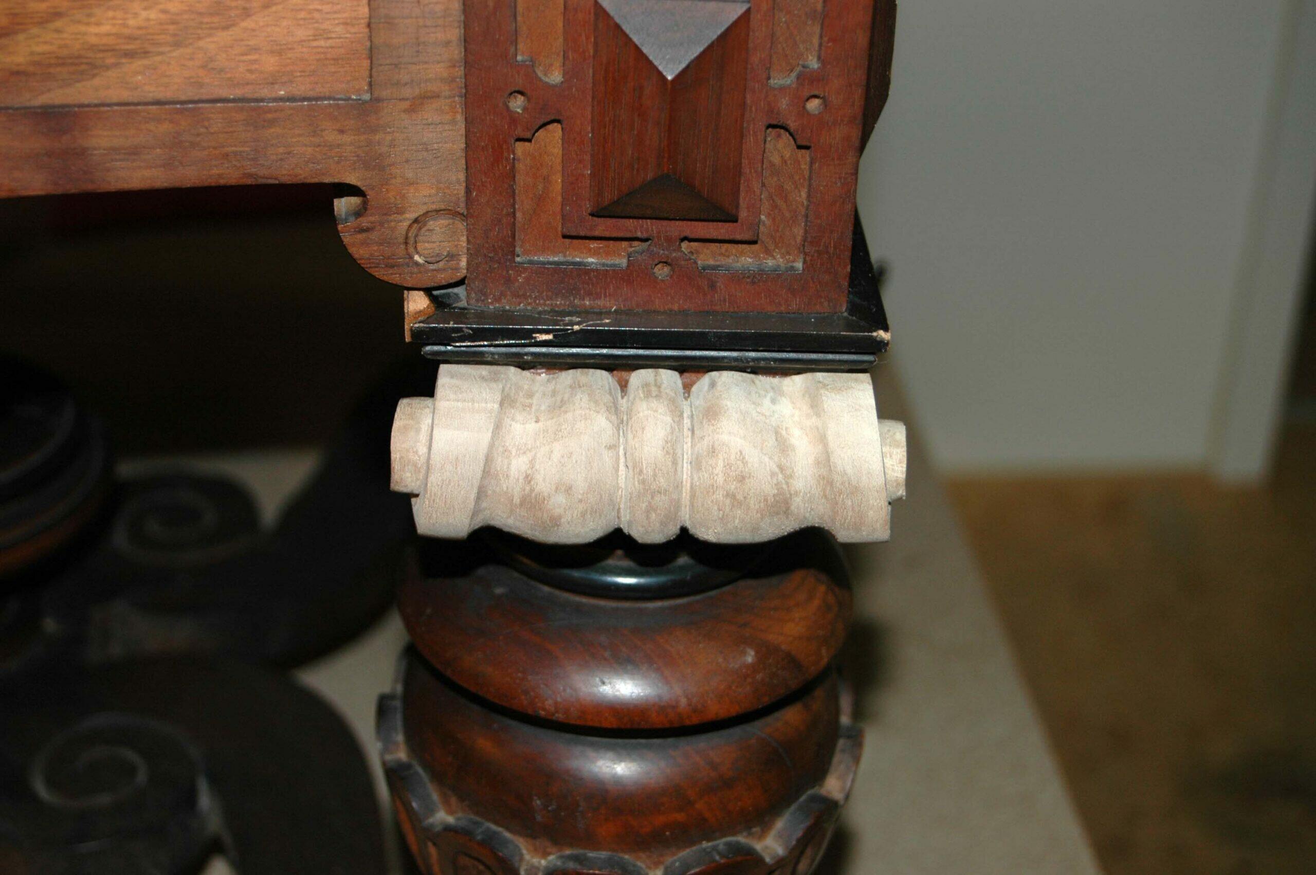 Unter anderem mehrere äußerste qualitätvolle Stühle aus geschnitztem Nussbaumholz mit originalen Seidenbezügen. Diese vermitteln einen Eindruck von der Herrschaftlichkeit und Farbigkeit der Prunkräume.